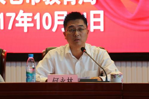 何永林局长肯定了2017年我市普通高中在教学改革、办学水平、人才队伍等方面取得的新进展和新提高,提出要从共享优质资源、转变管理方式、提升专业素养、树立良好风尚、保障健康发展等五个方面部署下阶段普通高中的教育工作。