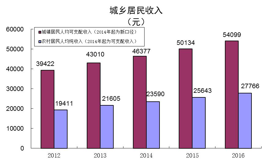 全年城镇居民人均可支配收入54099元,农村居民人均可支配收入27766元,分别比上年增长7.9%和8.3%。城镇居民人均生活消费支出33721元,农村居民人均生活消费支出19589元,分别增长7.1%和13.0%。城乡居民食品支出占生活费支出的比重(恩格尔系数*)分别为30.1%和30.6%。