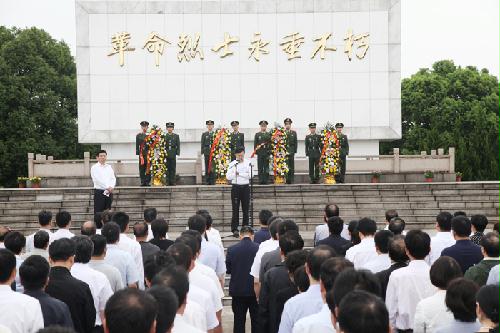 | 为缅怀革命先烈,弘扬民族精神。9月30日,在全国第四个烈士纪念日到来之际,我市在革命烈士陵园隆重举行烈士公祭活动,虔诚祭奠革命先烈的不朽英魂,表达我市人民的深切悼念和无限敬仰。市领导沈觅、王建国、钱文辉、陆卫其、邱震德等参加公祭活动。参加公祭活动的还有市委、市人大、市政府、市政协全体领导;市法院、检察院、市人武部、市委各部委办局、市各委办 局、市各人民团体、各直属单位、健雄学院主要负责同志;市级机关党员干部代表,驻太部队官兵代表,少先队员代表,老战士和烈士遗属代表、新婚夫妇代表等250多人。
